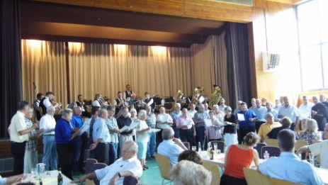 Bei der Begrüßung des Ehrengastes, dem Baddis am Samstag, den 25.08.18, schmetterten wir ihm unseren musikalischen Willkommensgruß entgegen – immer in der Hoffnung auf ein gutes Ende.