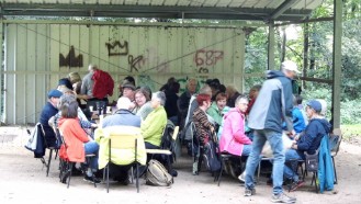 Gegen 12:00 Uhr erreichten die Teilnehmer so das erste Etappenziel, den Fischweiher. Wie es im Verein üblich ist, wurde dort für das leibliche Wohl gesorgt, sodass sich die Wandergruppe vor und nach dem Singen stärken konnte.