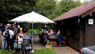 Der Startschuss fiel um 11:00 Uhr am Vereinslokal, wo sich besonders die wanderfreudigen Mitglieder versammelten. Gemeinsam ging es, mit einem kleinen Umweg über das Schwinnenkreuz, zum Gelände des Angelsportvereins Schwarzenholz – dem ersten Ziel der Wanderung.